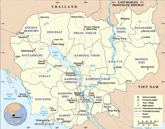 Phnom Penh Capital of Cambodia, Siem reap Angkor, Battambang, Pheah Vihear, Kampong Thom, Kratie, Mondol Kiri, Rattanak Kiri, Kampot province.
